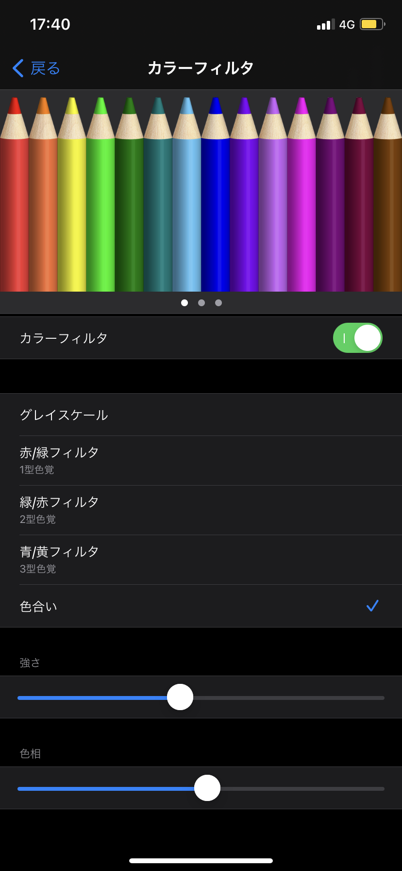 カラーフィルタをオンにするとこのような項目が出てくるので
